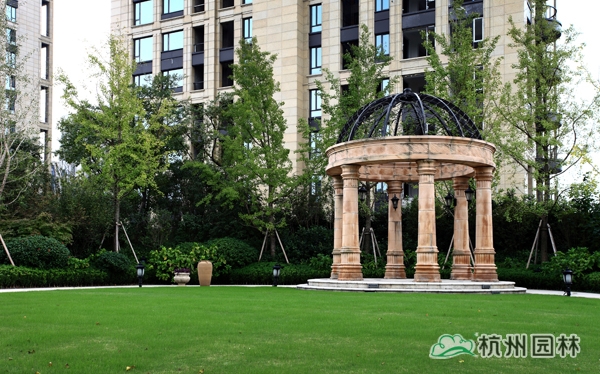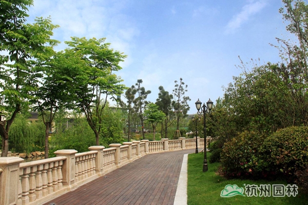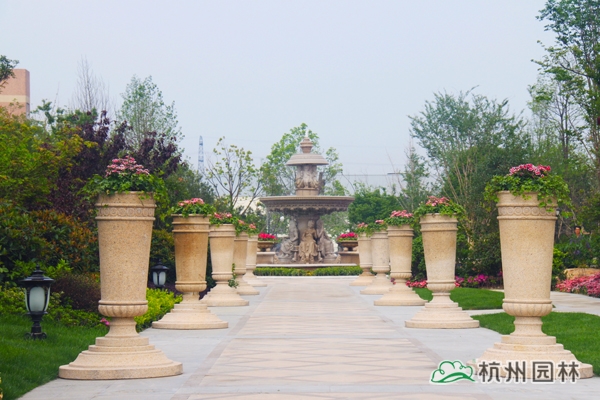 該工程位于杭州城北石祥路與蔡馬河交匯處,為大型綜合性園林景觀工程,內(nèi)容包括園林建筑、苗木種植、硬質(zhì)鋪裝、疊石跌水、景觀小品、土坡造型等。該項目景觀全方位采用規(guī)則式與自然式融合的維多利亞園林風(fēng)格,如夢似幻,華貴雍容,將維多利亞皇家園林景觀特征表現(xiàn)得淋漓盡致。