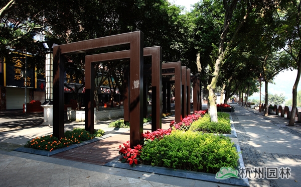 該工程起于濱江路孝順路口,止于國窖長江大橋,是瀘州市“兩江四岸”規(guī)劃建設(shè)的示范性工程。工程的設(shè)計不僅體現(xiàn)出了自然與生態(tài)融于一體的園林理念,注重對原生態(tài)環(huán)境的保護(hù),節(jié)能環(huán)保材料的應(yīng)用及后期養(yǎng)護(hù)的簡單方便等,更重要的,將瀘州深厚的歷史文化元素融入其中,讓人們在欣賞現(xiàn)代美景的同時,可以穿過歷史的塵煙,記住這座城市的一路變遷,品味時光的流轉(zhuǎn)。一處地標(biāo)式的城市景觀,將“醉美瀘州”展現(xiàn)得琳漓盡致。