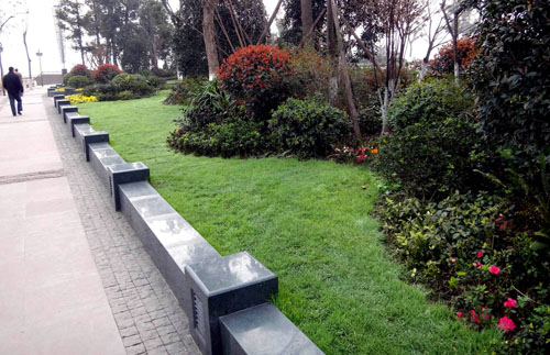 據(jù)李壽仁介紹,保留下來(lái)的大樹主要有兩種處理手法:像天竺桂、黃葛樹等幾十年的老樹,在周圍搭建木質(zhì)平臺(tái),既可以保護(hù)大樹,又可供游人休息;一些香樟、桂花、銀杏等,則用森林綠整石圍邊,搭配草皮、三色堇、球類、日本紅楓等植物,采用花境的布置手法,建成一個(gè)個(gè)面積大小不一的花壇,營(yíng)造出四時(shí)風(fēng)光各不同的江南園林意境。而平滑、細(xì)膩的森林綠整石,既是景觀的一部分,又是漂亮的坐凳,兼顧了景觀與實(shí)用的功能。