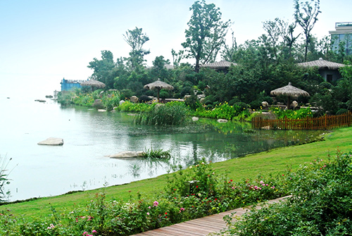 吳江東太湖溫泉度假酒店是一個旅游度假項(xiàng)目,位于江蘇省吳江市松陵鎮(zhèn),坐擁東太湖天然水景資源,視野開闊,景觀宜人。該項(xiàng)目景觀工程施工總面積21.5萬平方米,分兩個標(biāo)段進(jìn)行。一標(biāo)段施工面積13萬平方米,總造價7800萬元,由杭州市園林綠化股份有限公司承建;二標(biāo)段施工面積8.5萬平方米,總造價2800萬元,由杭州蕭山園林集團(tuán)有限公司承建。工程施工包括:綠化種植、土建施工、景觀小品、水景、景觀建筑、給排水系統(tǒng)及景觀照明系統(tǒng)等。該項(xiàng)目五大景觀亮點(diǎn)為工程添光加彩,獲得了2014年度“中國風(fēng)景園林學(xué)會優(yōu)秀園林工程大金獎”。