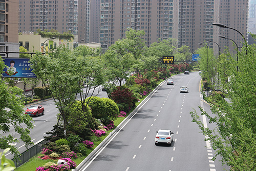 項目南起新業(yè)路,北至?xí)一ㄢ致?,全長約1750米,是集綠化、美化、文化等為一體的景觀大道,四季特色分明。春有日本早櫻、垂絲海棠等花滿枝頭;秋有銀杏、紅楓色彩明艷,更有桂花一路飄香;夏、冬時節(jié)風(fēng)景又有不同。豐富的植物配置、色彩鮮艷的草花、文化氣息濃郁的小品……使得這條道路開闊大氣,充滿生機。