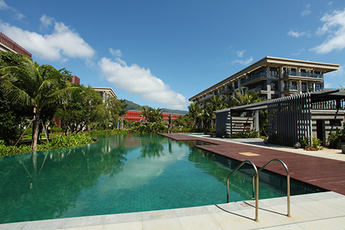 項目位于海南省三亞市亞龍灣椰風(fēng)路南部,整體景觀顯得張弛有度,開闊大氣的廣場鋪裝、宛若綠色地毯般的草坪、色彩豐富長勢茂盛的植物、藍寶石般的碧藍泳池……規(guī)整中不失自然,簡潔中深藏精致,盡顯現(xiàn)代主義風(fēng)情的園林美景。