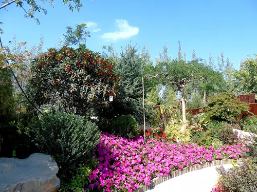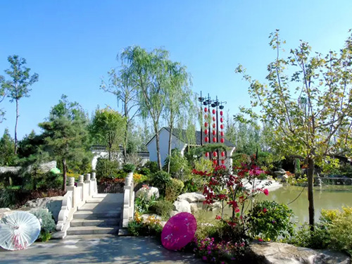 花博會開放時間是9月份,為配合開園需要,根據(jù)不同植物的開花特性及要求,采取相應(yīng)的措施,確保植物的最佳觀賞效果。桂花是杭州市市花,是集綠化、美化、香化于一體的優(yōu)良園林樹種,一般在仲秋時節(jié)綻放,“浙江園”的桂花全部精選自杭州畫境種業(yè)有限公司,提前運送至銀川之后,利用當?shù)氐牡蜏丨h(huán)境誘使其完成花芽分化,在開園時營造了桂花滿樹、滿園飄香的氛圍。八仙花又名繡球,花大色美,是長江流域著名觀賞植物,在明、清時代建造的江南園林中就栽有八仙花。特別是八仙花‘無盡夏’具有多次開花的特點,項目人員通過修剪、培育,促進其花芽的再次分化,使展園內(nèi)的八仙花處于生長繁茂、花團錦簇的良好狀態(tài)。此外,還結(jié)合公司“一種紅楓快速成景方法”等專利,運用摘葉等形式促進槭樹科植物萌發(fā)新葉,為九博會的開幕增添新的色彩。