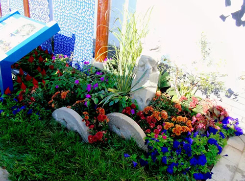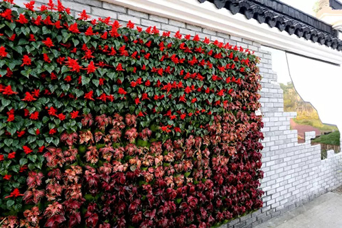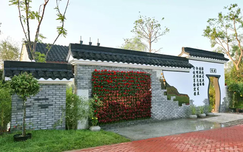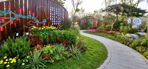 考慮到銀川的干燥氣候,垂直綠化墻植物的保濕成為難題。“浙江園”垂直綠化墻以無紡布為墻體材料,使用保濕性強的基質(zhì),優(yōu)選植物種類,同時搭配滴灌系統(tǒng),保證了綠化墻鮮花擁簇的景象。展園內(nèi)的垂直綠化墻設(shè)計簡潔、曲線優(yōu)美,與以錢塘江文化為主題的背景墻相互映襯,共同展現(xiàn)了新時期浙江園林景觀的不斷發(fā)展與創(chuàng)新。