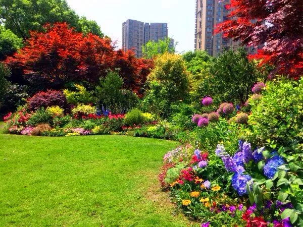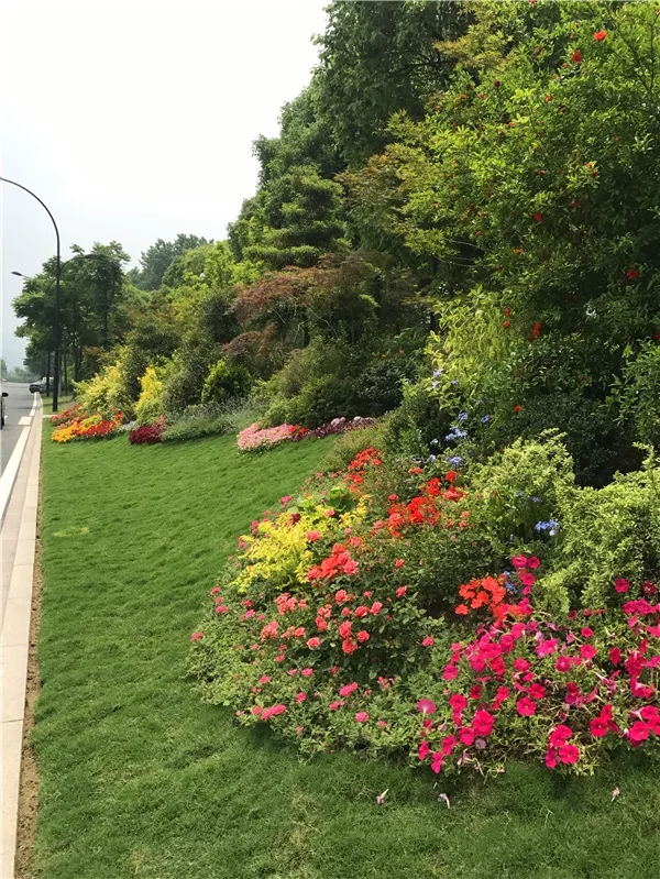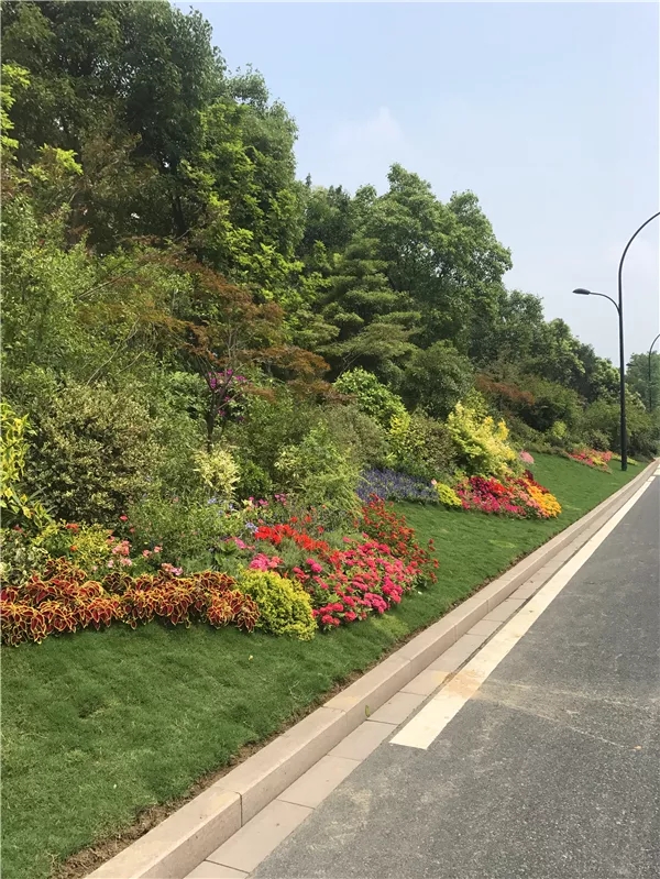 在植物搭配方面,花色搭配既要美觀,又要自然,避免使用強(qiáng)烈的對比色,群落配植要遵循疏密有致原則,保證每株植物都能各有所美。