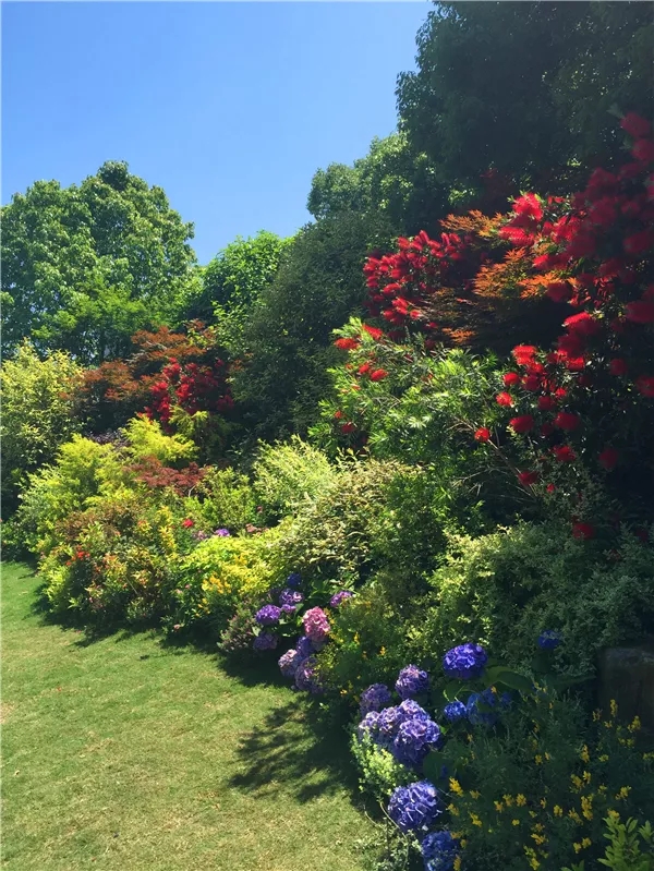 李壽仁則提出了干凈、秩序、健康、協(xié)調(diào)的四美標(biāo)準(zhǔn),用葉色、質(zhì)感不同的木本植物,通過團(tuán)植、留白、景深、層次等多種藝術(shù)手法打造出低維護(hù)成本的木本花境,高低錯(cuò)落、顏色豐富,景觀效果俱佳。