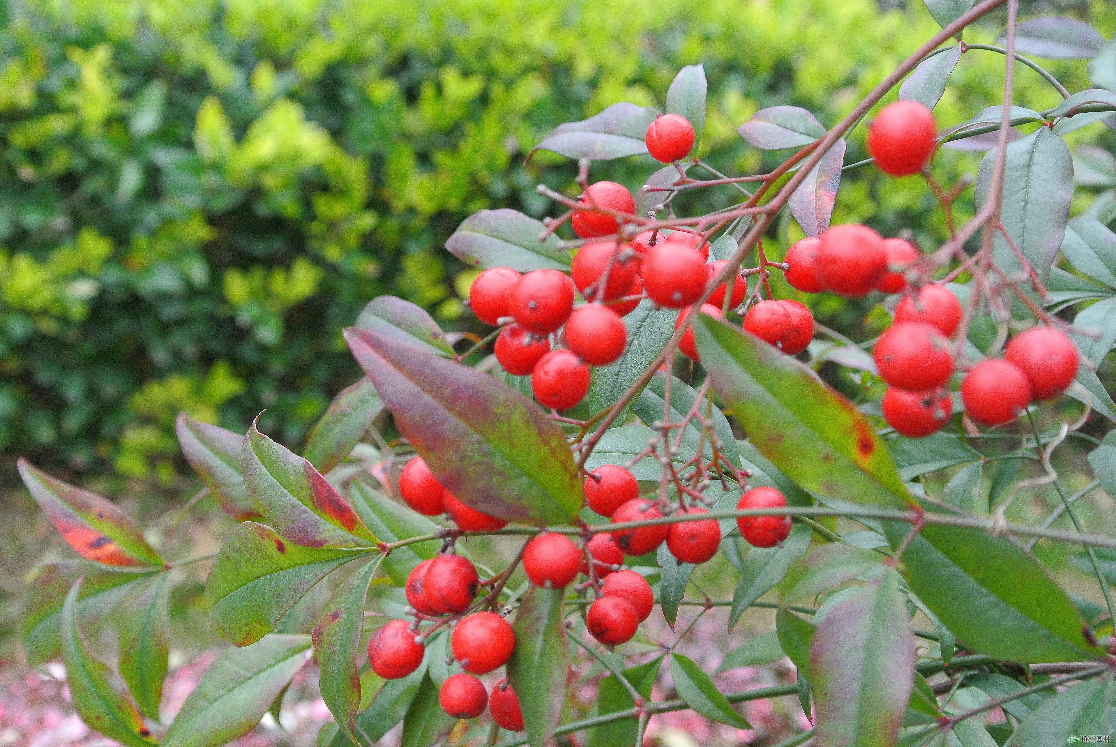 常綠小灌木,高1-3米。幼枝常為紅色,老后呈灰色。小葉薄革質(zhì),橢圓形或橢圓狀披針形,上面深綠色,冬季變紅色。圓錐花序直立,花小,白色,具芳香,花瓣長(zhǎng)圓形。漿果球形,直徑5-8毫米,熟時(shí)鮮紅色,稀橙紅色。花期3-6月,果期5-11月。