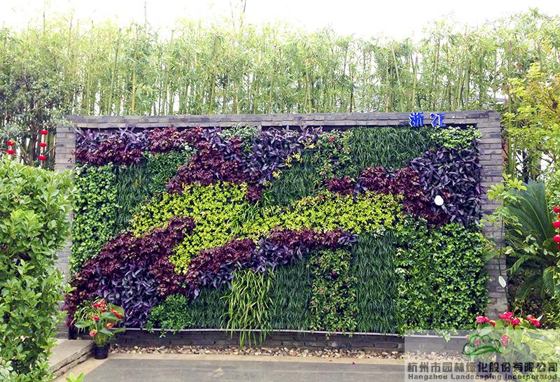 浙江省的新型垂直綠墻技術(shù)在國內(nèi)處于領(lǐng)先水平。位于展園富春山居負(fù)一層門口右側(cè)的垂直綠墻,選用小葉梔子、龜甲冬青、黃金海岸線柏、火焰南天竹、哈伯南天竹、常春藤、吊蘭等植物,以“絲”為筆,用流暢的線條勾勒出浙江絲綢之美、體現(xiàn)浙江絲綢之韻,描繪出一幅柔軟飄逸的浙江絲綢之畫。