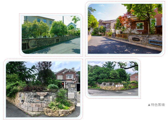 在進行景墻施工時,根據(jù)每家的房屋建筑特色選擇了不同的材料和植物配置手法。比如,建筑外立面為紅色的,景墻以紅色磚為主,搭配月季、佛甲草等植物;建筑外立面為灰色的,景墻以淺黃色磚為主,結(jié)合小木樁或仿竹籬笆,搭配石竹、美女櫻等植物;建筑外立面有大理石點綴的,景墻以桐廬石為主,輔以裝飾過的輪胎,點綴佛甲草、常春藤等植物。不同的處理手法,使得家家戶戶的景墻既有連續(xù)性,又有各自的風格。