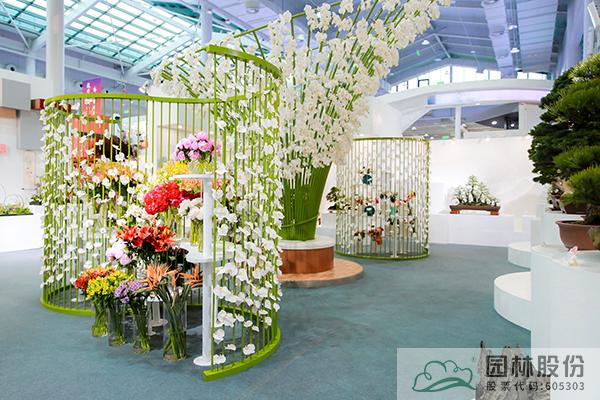 走進館內(nèi),各種浙江特色新優(yōu)園林園藝植物產(chǎn)品、花藝作品、盆景作品等,讓人忍不住駐足停留。最引人注目的,則是以一朵朵白色的蝴蝶蘭花朵與仿竹構(gòu)筑物營造的立體景觀,結(jié)合蒼翠欲滴的竹林背景和浙派山水盆景,營造出綠意盎然、生機無限的風景畫卷。寓意浙江是“綠水青山就是金山銀山”理論的發(fā)源地,表現(xiàn)浙江始終踐行“綠水青山就是金山銀山”的理念、大力推進生態(tài)文明建設取得的巨大成就。
