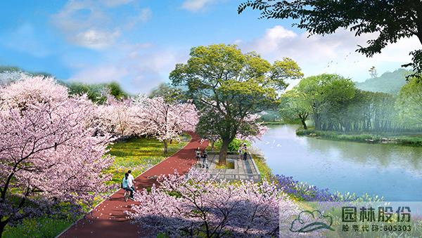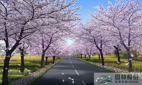 櫻花大道上層櫻花采用早櫻類(迎春櫻)、染井吉野等櫻花品種,下層植被采用繡線菊、蝴蝶花、石蒜、紫花地丁等。