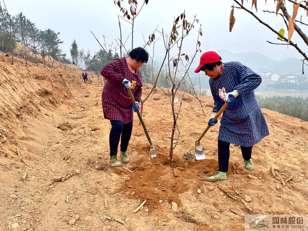 櫻花種質(zhì)資源圃規(guī)劃面積20畝,規(guī)劃品種150個,定植櫻花500余棵。本次移栽的櫻花中,品種非常豐富,涵蓋早櫻、陽春櫻、晚櫻等,其中包含園林股份為授權(quán)單位的11個新品種櫻花。研究院副主任魏建芬、邱帥博士長期駐扎施工現(xiàn)場指導(dǎo)工作,針對每一個品種、每一顆苗木數(shù)量進行清點,認真核對種植方位,確保品種不亂、數(shù)量正確。為保障工期,研究院的同事紛紛放棄休假,加班加點投入到項目中來,發(fā)揚一不怕苦、二不怕累的精神,每天奔波在各個山頭之間,為項目的高水平建設(shè)作出積極貢獻。