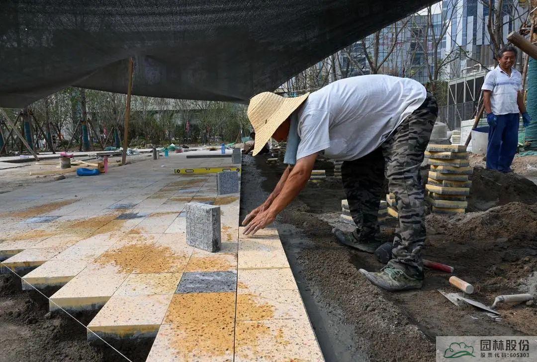 工人進行道板鋪設(shè)。