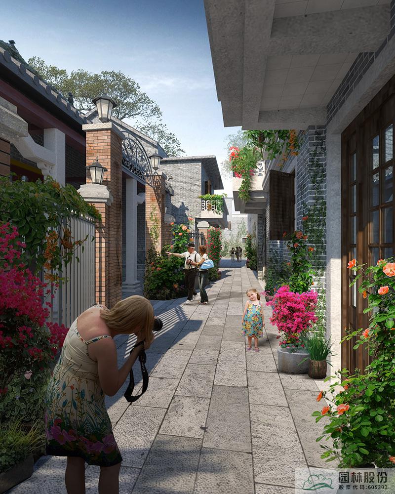 巷道改造現(xiàn)狀:現(xiàn)狀巷道為水泥路鋪裝,沿路缺少綠化,墻面磚砌樣式多樣,不統(tǒng)一,景觀效果不佳。