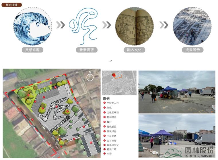 入口休閑廣場概念演繹設(shè)計說明:現(xiàn)狀場地主要為一片空地,由于南面是菜場,因此該場地在功能性上主要有貨車卸貨的功能,考慮村莊內(nèi)可能舉辦大型祭祀活動或者紅白喜事,需要有大空間,所以在設(shè)計中留出了大片場地。因沿海城市,所以提取了海浪元素,結(jié)合當(dāng)?shù)貧v史文化及村落肌理,做出如圖設(shè)計。