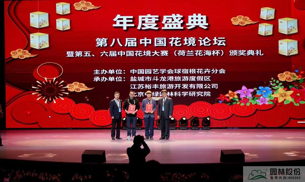 園林股份副總裁李壽仁(左二)上臺(tái)領(lǐng)取特級(jí)花境師證書
