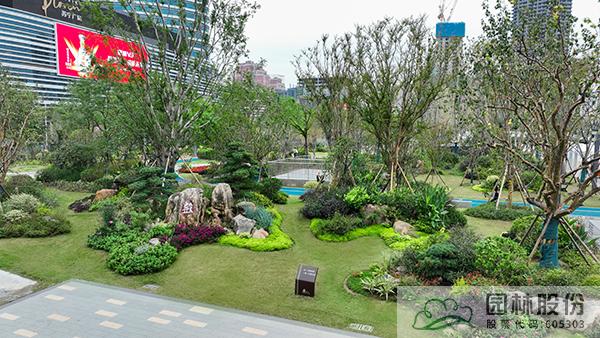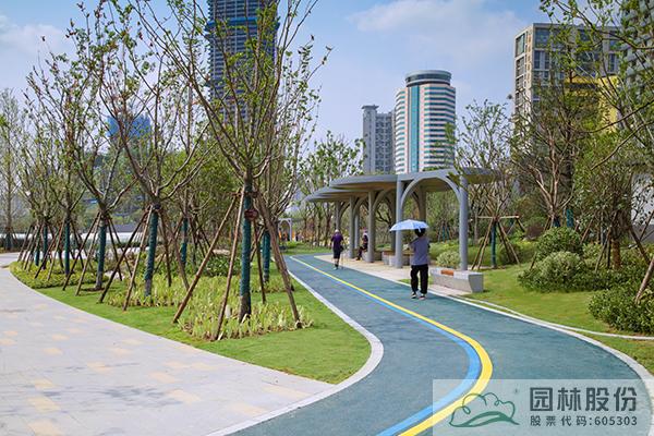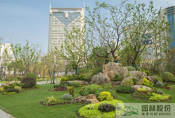 項(xiàng)目注重新優(yōu)植物的應(yīng)用,行道樹采用娜塔莉、中心廣場通道兩側(cè)綠地種植美國紅楓、中心廣場內(nèi)種植銀杏樹等色葉樹種。翠綠的枝葉相互掩映,樹下設(shè)有林蔭座凳,夏季可有“大樹成蔭”之景,市民可觀賞可乘涼,充分感受自然野趣。主道路行道樹為染井吉野等開花與色葉樹種,周邊綠地采用混合花境置石結(jié)合的配置手法,時花、低矮花灌木與景石自然搭配,并大量應(yīng)用了公司自主研發(fā)的繡球新品種,營造景觀豐富的長效花境景觀。