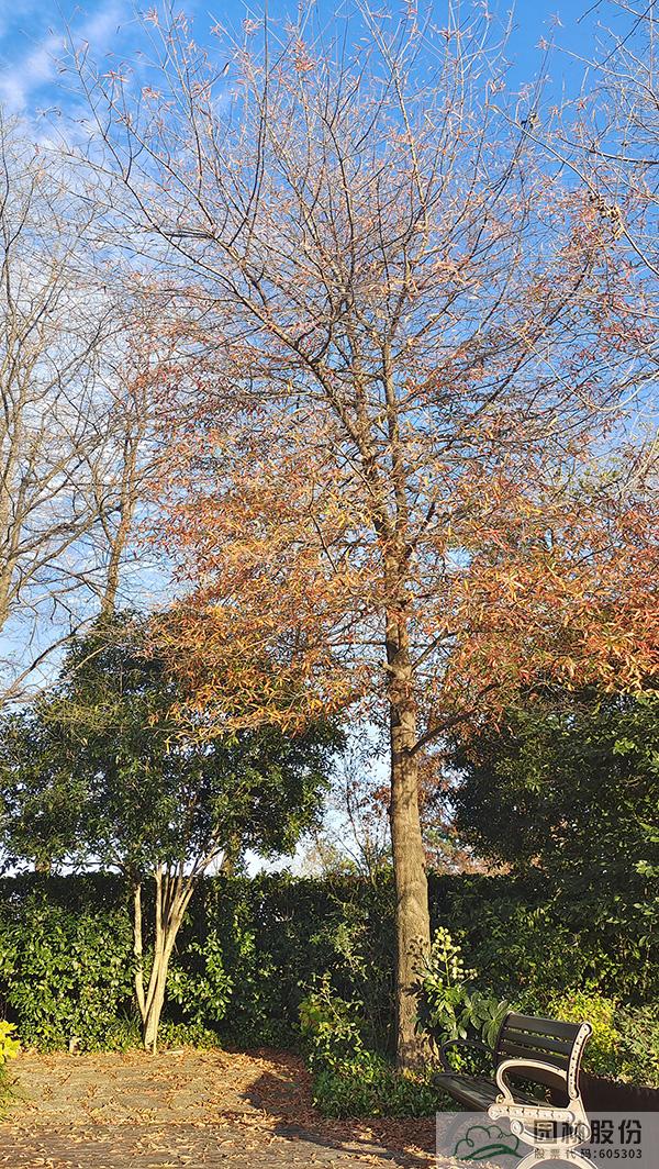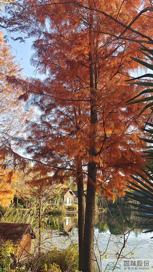 在初冬的日子里,怎能少了水杉、池杉、水松這類落葉針葉樹呢。遠(yuǎn)看,褐色的枝葉、豎向的線條,滿滿的都是初冬的靜謐。如果在林下的園路穿梭,還能看到細(xì)細(xì)密密的落葉灑滿林間,絲絲縷縷的陽光灑落進(jìn)來,好希望時(shí)間一直停留在這一刻。