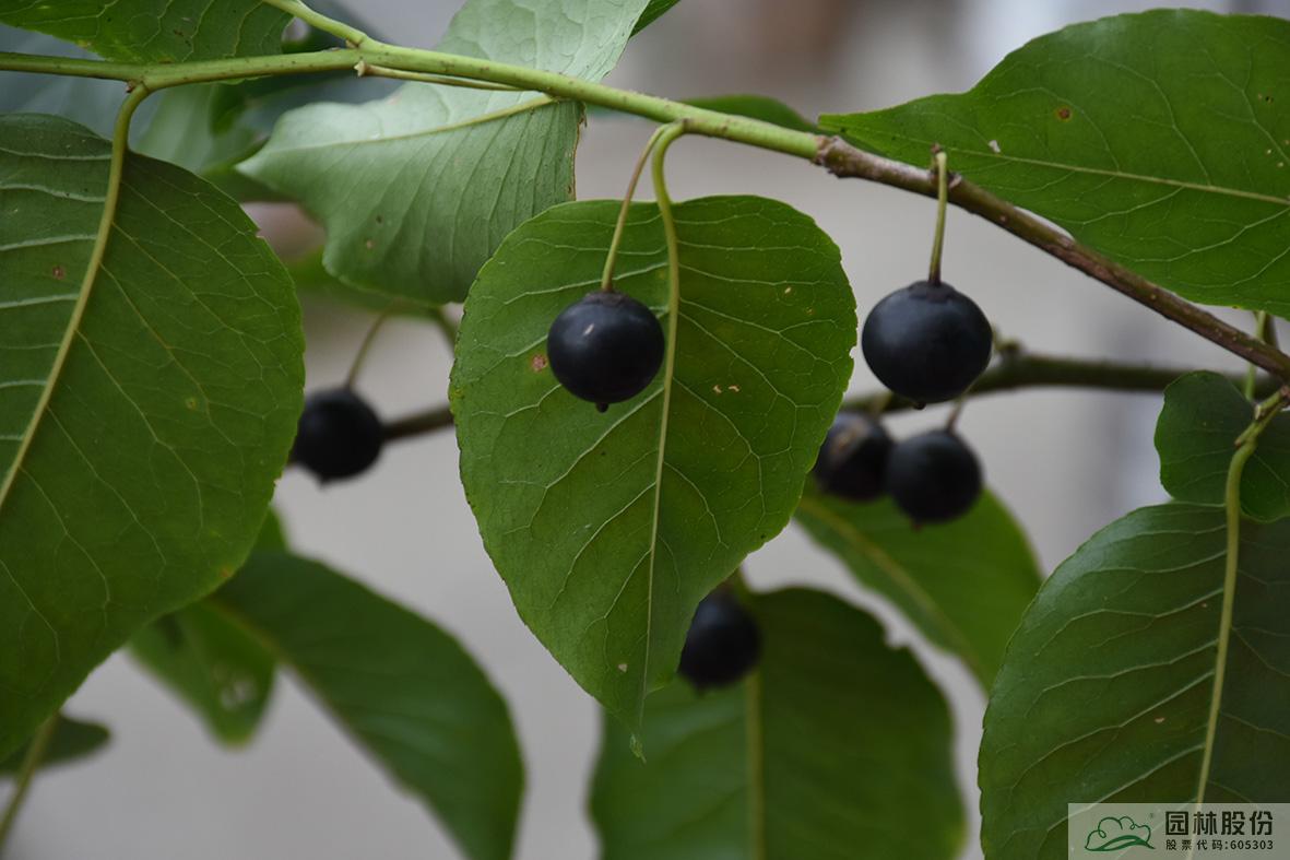 大果冬青:落葉喬木,樹體高大,分枝點(diǎn)高。葉片紙質(zhì)至堅(jiān)紙質(zhì),卵形或卵狀橢圓形?;ò咨揖叩南銡?。果成熟時(shí)黑色,球形。四季景觀分明,隨時(shí)間和空間變化呈現(xiàn)不同的姿態(tài),色彩和意境,常在園林景觀中孤植。