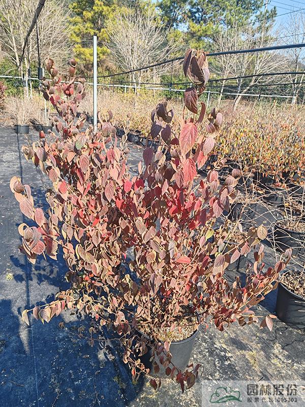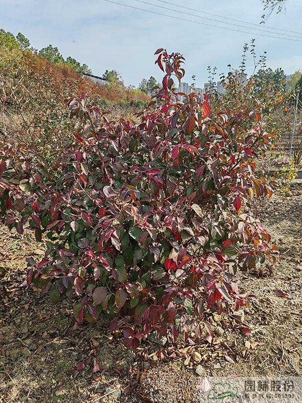 忍冬科莢蒾屬,落葉灌木,全株被毛?;ò咨?,量大,花期4月。果紅色,量通常較小,果期10-12月。秋季葉色變暗紅,通常11月開始變色,12月至次年2月達(dá)到最佳觀賞效果。病蟲害較少,生長(zhǎng)速度快,且耐寒,通常雪期還未落葉。植株極耐修剪,適合工程應(yīng)用或庭院觀賞。