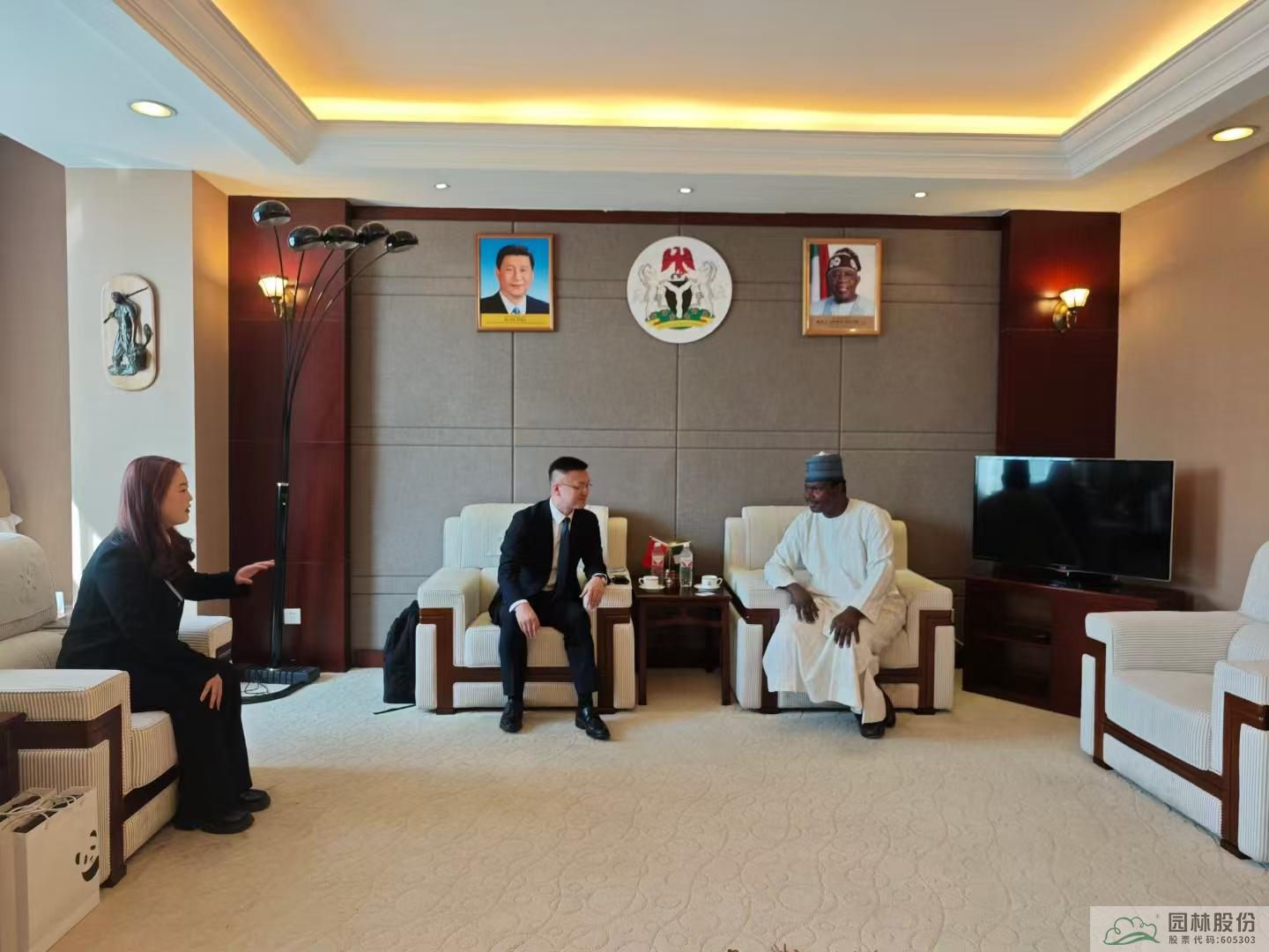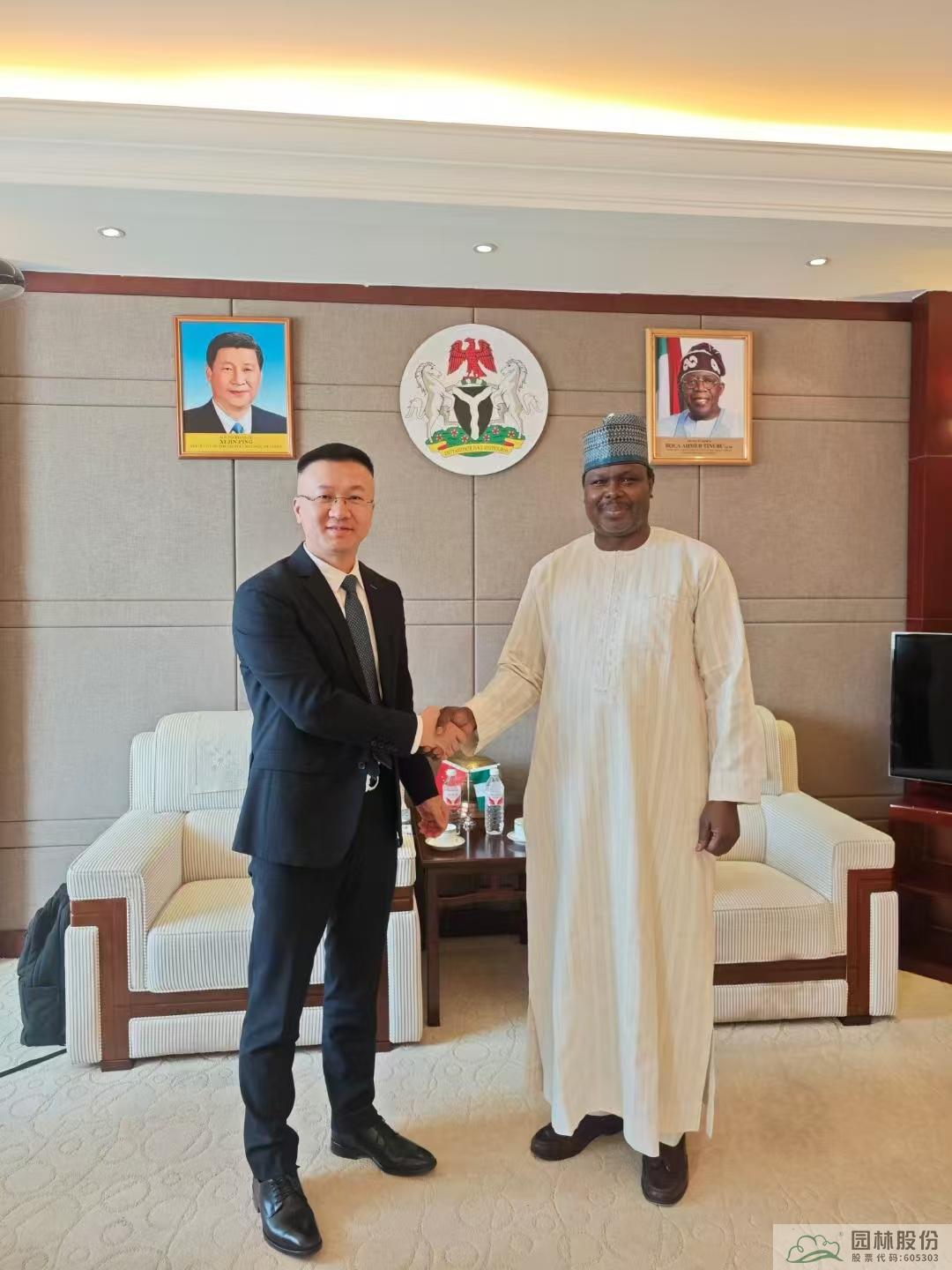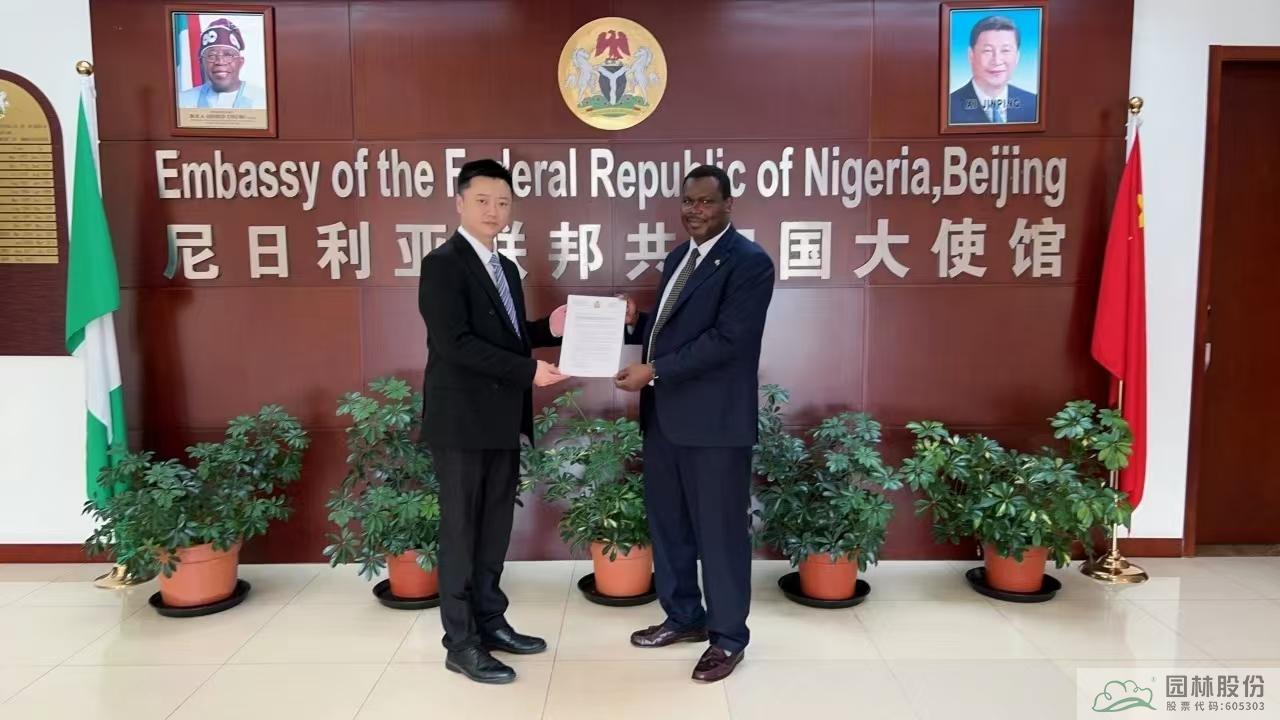 2024年9月,在杭州第三屆全球數(shù)字貿易博覽會-“數(shù)智中非”產(chǎn)業(yè)對接會上,園區(qū)已取得“尼日利亞國家館”正式授權。此次拜訪尼日利亞駐華大使館,陳振華與駐華大使巴巴加納·瓦基勒(Babagana Wakil)就國家館建設、農產(chǎn)品貿易、投資合作等議題進行了深入交流。