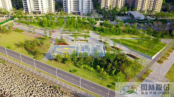 項目場地屬于濱海鹽堿地,現(xiàn)場存在大量的建筑垃圾,受鹽分影響較大。施工中采用防鹽堿技術(shù)進(jìn)行處理,做法從上向下依次為:種植土、防水土工布、土工布、5層稻草簾、30cm碎石。經(jīng)過處理的土地上,不管是各類硬質(zhì)鋪裝,還是豐富的植物,均呈現(xiàn)出良好的景觀效果。