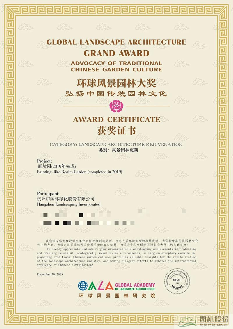 杭州園林股份兩項(xiàng)目斬獲環(huán)球風(fēng)景園林大獎(jiǎng)