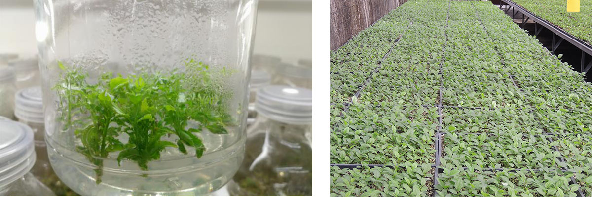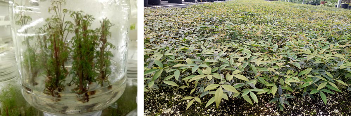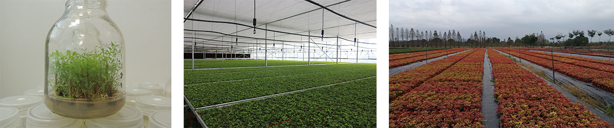 研發(fā)中心擁有1200㎡組培研發(fā)及生產(chǎn)車間,年產(chǎn)組培種苗500萬(wàn)株。經(jīng)過(guò)多年的研發(fā),建立了南天竹屬、冬青屬、礬根屬、紫金牛屬、繡球?qū)佟褜俚榷喾N植物組培快繁技術(shù)體系,在木本植物組培快繁技術(shù)方面處于國(guó)內(nèi)領(lǐng)先水平。